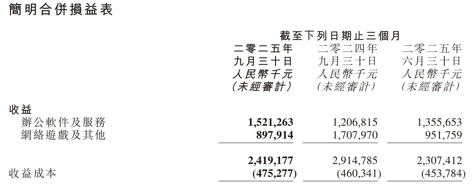(数据来源:金山软件2025年三季度报)