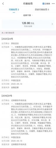 企查查APP显示,*ST康美目前共有2则行政处罚。其中,2020年5月14日晚间,证监会依法对康美药业违法违规案作出行政处罚及市场禁入决定。对康美药业给予警告并处以60万元罚款,对主要责任人罚款并市场禁入,其中,马兴田、许冬瑾、邱锡伟被采取终身证券市场禁入措施。