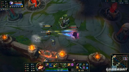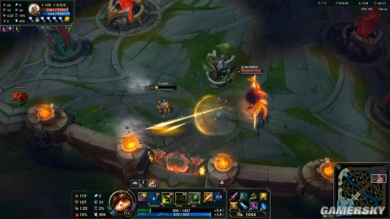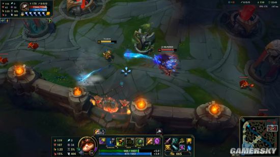 演示中可以看到许多英雄被提莫致盲后,普通攻击会打偏到提莫左右两侧,提莫走动时看起来就像是走位躲开了敌人的平A,是一个很有趣的改动,玩家们可以更直观地看到自己被致盲了,不过也有一些英雄的MISS动画没有改,比如老鼠开大后平A,锤石平A,维克兹平A和厄加特的W技能。