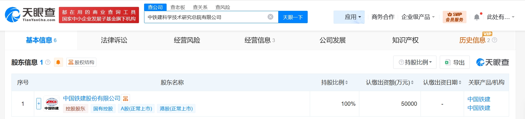 中铁建科学技术研究总院公司成立 注册资本5亿观点