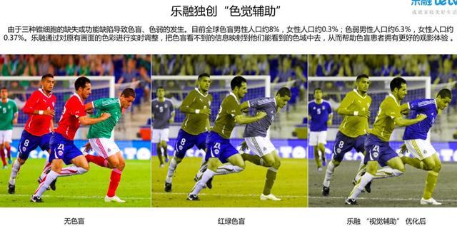 另外,乐融Letv还展示了“色觉辅助”这一黑科技功能。由于三种锥细胞的缺失或功能缺陷导致色觉障碍用户、色弱的发生,目前全球色觉障碍用户男性人口约占8%,女性人口约占0.3%;色弱男性人口约占6.3%,女性人口约 占0.37%。乐融独创的“色觉辅助”技术是通过对原有画面的色彩进行实时调整(用色觉障碍用户可以感知到的色彩代替其无法感知的部分),把色觉障碍看不到的信息映射到他们能看到的色域中去,从而帮助色觉障碍患者拥有更好的观影体验。