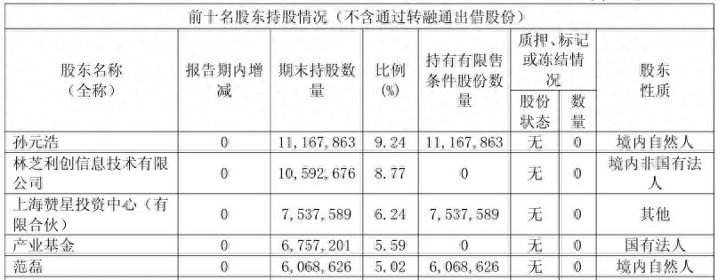 除了孙元浩,星环科技持股5%以上的股东还有林芝利创信息技术有限公司、上海赞星投资中心、产业基金、范磊,持股比例分别为8.77%、6.24%、5.59%、5.02%。