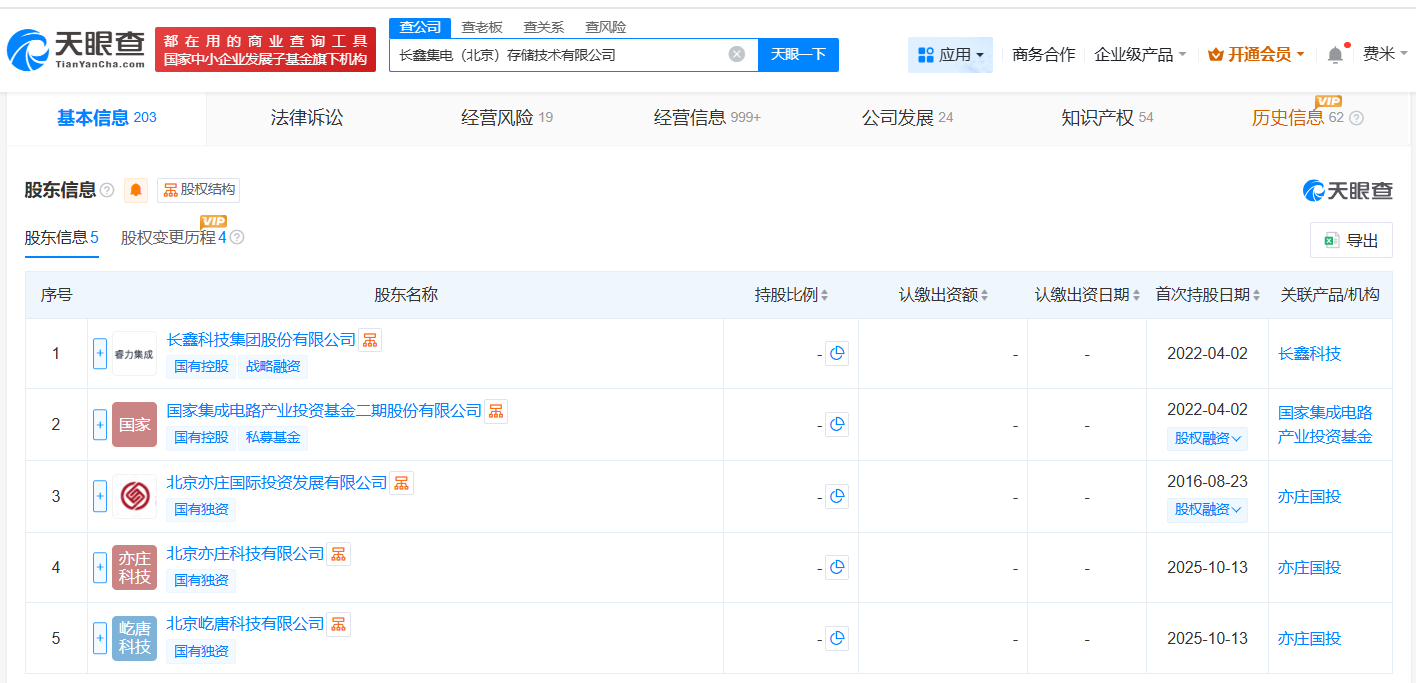 该公司成立于2016年8月,法定代表人为赵纶,经营范围包括集成电路设计、集成电路制造、集成电路芯片及产品制造等,现由长鑫科技集团股份有限公司、国家集成电路产业投资基金二期股份有限公司、北京亦庄国际投资发展有限公司及上述新增股东共同持股。
