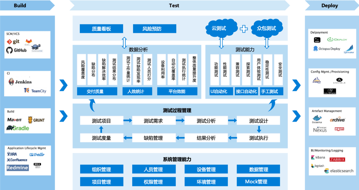 在流程管理方面,企业在软件和系统测试过程中存在着许多的管理方面的问题,比如测试质量问题、测试效率问题和测试资产管理问题等。这就需要券商考虑一站式的测试管理数字化平台,来进行整体的测试管理,提高测试效率,降低测试成本,保证测试质量。