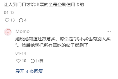 妹子后怕地说,当时四五个工作人员围着,差点给她俩拉黑名单,最终她们只好在官方App上重新购票,事后才知道买到了信用卡盗刷票。