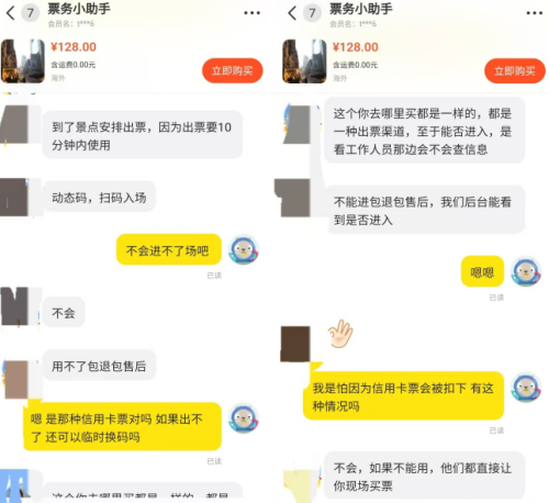 我说,当然关注过了,年初带孩子在纽约玩,当时顺手闲鱼搜了下几个当地知名景点,不少票价只有官网、携程的一半,那些卖家头像还挂着“出境自由行”、“票务小助手”字样,看起来特别懂行。