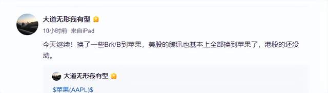 5、轮到抄底苹果?段永平:已把伯克希尔-B和腾讯ADR换成苹果