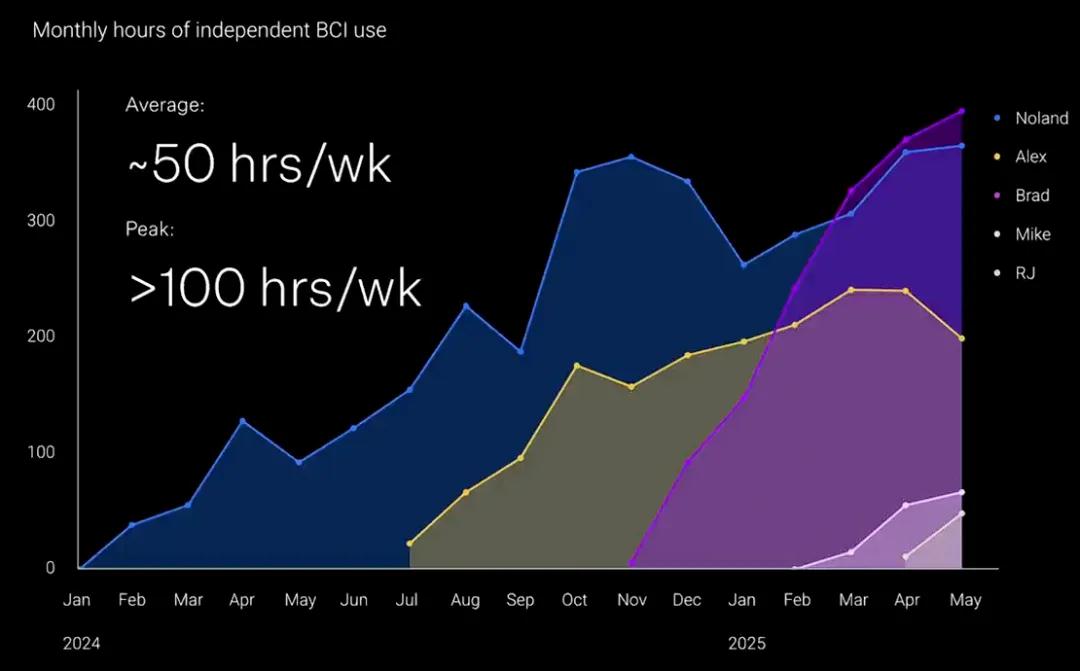 在Neuralink的夏季发布会上,七位受试者的故事比任何技术参数都更具冲击力。他们中有四位脊髓损伤患者、三位渐冻症患者,共同特征是身体被疾病“锁死”,却通过植入大脑的N1设备重获与世界交互的能力。