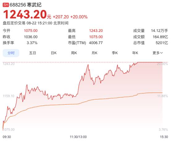 寒武纪触及涨停,市值近5200亿元,股价报1243.20元;中芯国际A股涨14.19%、港股涨9.86%。