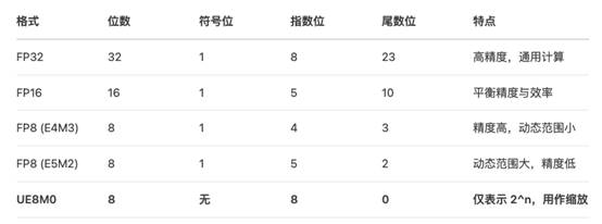 这里附上UE8M0 FP8 与传统浮点数格式对比: