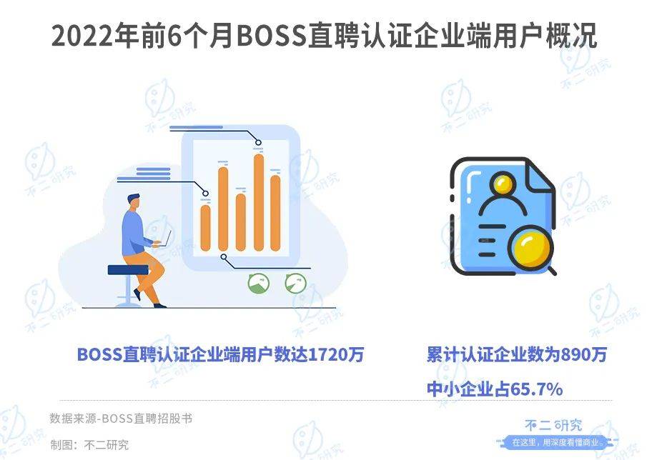 其招股书显示,截至2022年6月30日,BOSS直聘认证企业端用户数达1720万,同比增长15.82%;累计认证企业数为890万,同比增长23.44%。