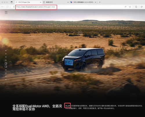 但据网友 / 博主反馈,该车改装自长城魏牌高山 9。同时法拉第未来官网曾显示有原型车相关介绍,其中写明高山 9(截至发稿,相关描述已删除)。
