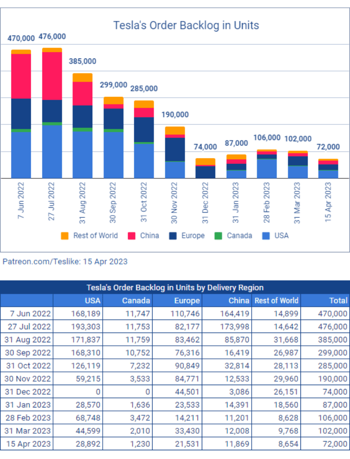 ▲ 截至4月15日,Troy Teslike对特斯拉订单储备的统计情况 图源:网络