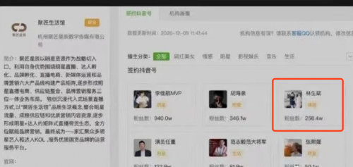 2020年11月,聚匠星辰完成Pre-A轮融资,当时的新闻稿中即出现“旗下主播包括胡海泉、林生斌、陈欢等,均为抖音主播。”在聚匠星辰的官方介绍中,林生斌也为签约主播之一。