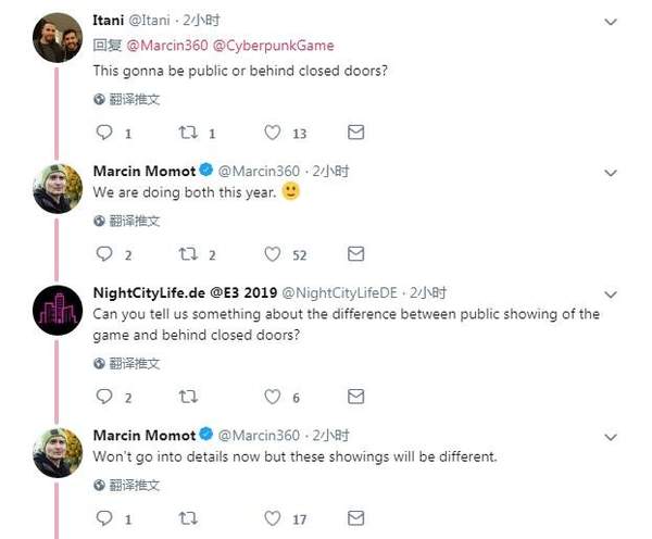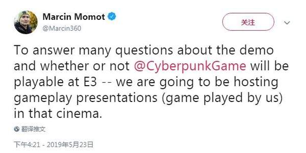 Marcin Momot还确认了《赛博朋克2077》会在今年E3同时提供公开演示和闭门演示,不过CDPR的社区经理Marcin Momot在推特上表示,昨日CDPR的负责人Adam Badowski在推特上表示。