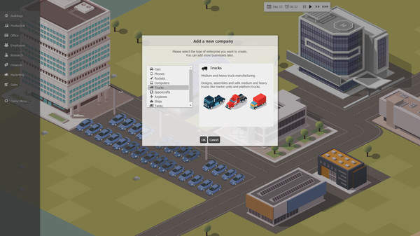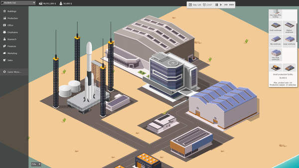 游戏是实时运行的,但可以随时快进和暂停。管理员工,跟踪财务和销售数据,启动和运行营销活动,分析市场。在您弄清楚一切是如何运作的之后,就可以拓展您的公司规模,管理生产计划并建立新设备,仓库,办公室甚至发射台等。