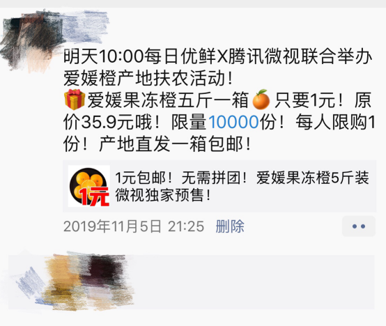 腾讯微视上新了!联合每日优鲜带货 1万份果冻橙20分钟被抢购一空快报