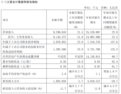 【TechWeb】11月12日消息,近日中芯国际公布了2021年第三季度财报。第三季度公司营收为92.81亿元,同比增长21.5%;净利润20.77亿元,同比增长22.6%。
