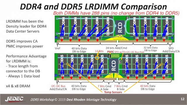 DDR5的内存总线需要以两倍于DDR4的速度运行,这些速度目标的基础是DIMM和内存总线的变化,JEDEC还利用DDR5内存标准的推出。