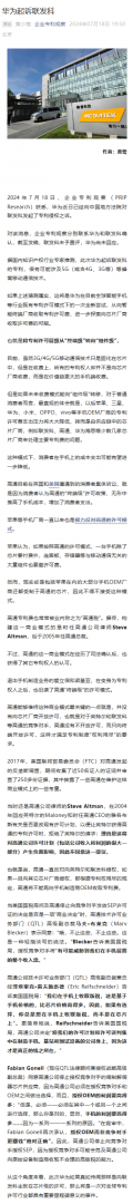 华为的PCT(产权组织《专利合作条约》)申请量在 2023 年位居全球榜首,中国的华为技术有限公司、韩国的三星电子和美国的高通公司是 2023 年产权组织国际专利体系的全球领先用户,这将是华为在目前全球智能手机等行业既有专利许可模式下的一次全新尝试。