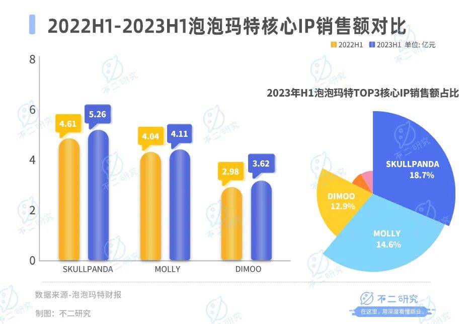 单一IP依赖性过高会对营收产生较大影响,其中老牌爆款MOLLY2023上半年表现乏力,销售额为4.11亿元,收入占比为14.6%,同比增加1.8%。