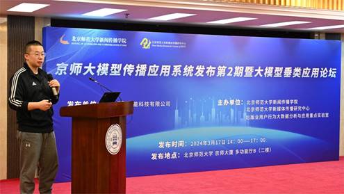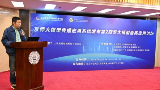 【TechWeb】2024年3月17日,由北京师范大学新闻传播学院、北京师范大学新媒体传播研究中心、出版业用户行为大数据分析与应用重点实验室主办,上海云阙智能科技有限公司(云阙智能)协办的 “京师大模型传播应用系统第二期发布暨大模型垂直应用论坛”成功召开。