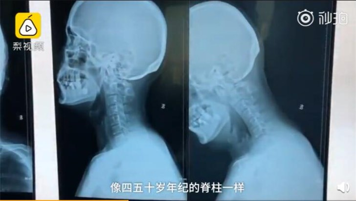据医生介绍,该小伙年龄只有26岁,其脊柱“像四五十岁年纪的脊柱一样”。其病因主要是因为平时喜欢玩手机,长期低头。