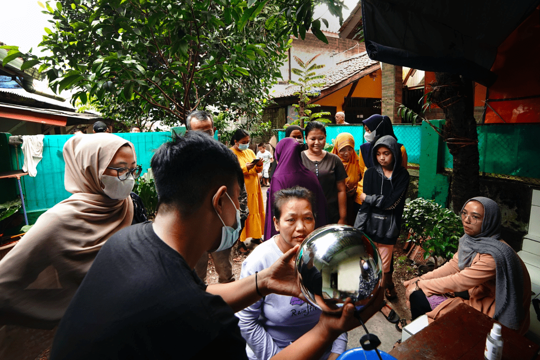 为了虹膜认证, 世界币还专门开发了一个用来采集虹膜的硬件设备 Orb,这个大白球会被举起来靠近人脸进行扫描,接受扫描的人需要尽可能睁大眼睛漏出眼白,保持个 10 秒左右就能搞定。