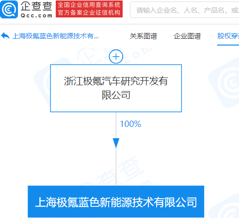 企查查股权穿透显示,该公司由浙江极氪汽车研究开发有限公司100%控股。