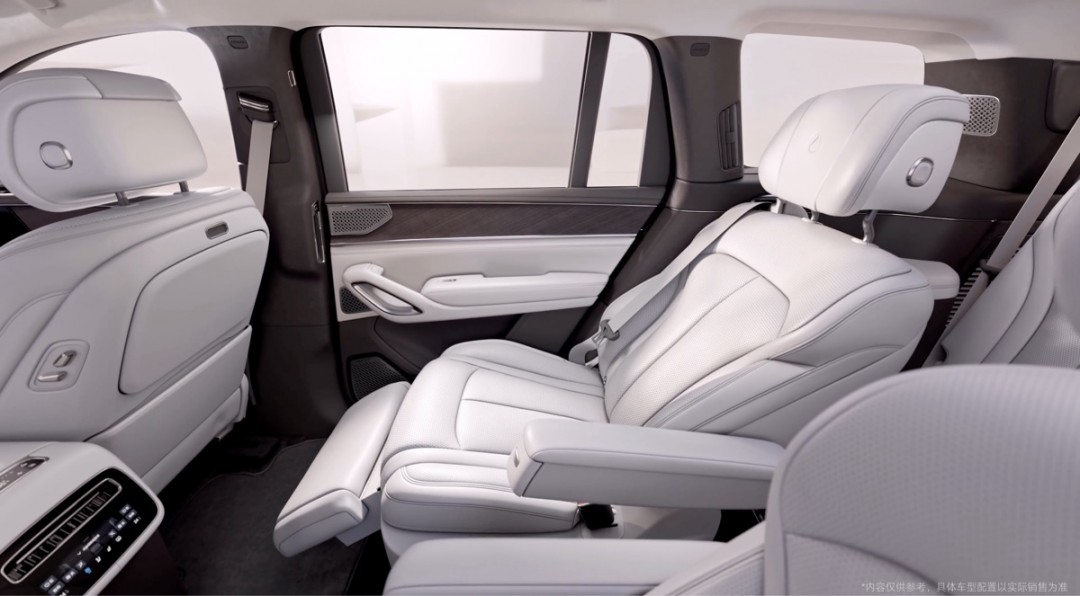 腾势N9采用2+2+2的6座布局,主驾座椅配备主动侧翼功能,副驾座椅提供四向女王腿托。第二排则为双独立座椅,配备了14向电动调节、左右横移联动调节、电动双腿托功能,大概率也支持零重力模式。