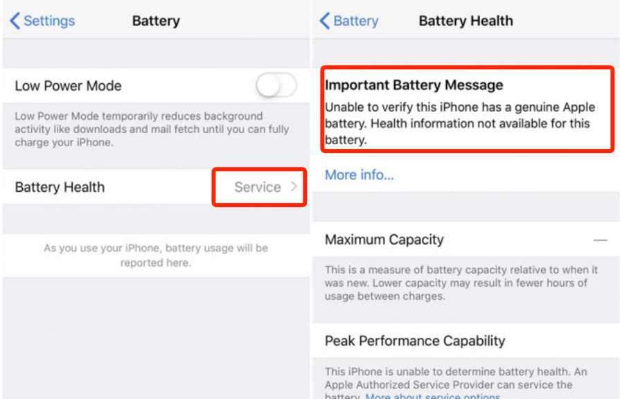从iPhone Xs/Xr/Xsmax开始,苹果公司对电池进行了加密,如果你自己更换是电池,不管是第三方品牌还是原装拆机电池,都全部会显示维修并提醒非原装电池。