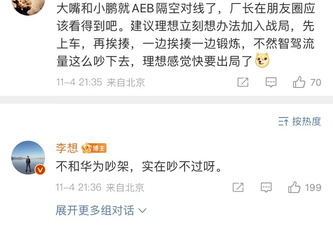理想汽车CEO李想在最新一条微博中回复网友:“不和华为吵架,实在吵不过呀。”