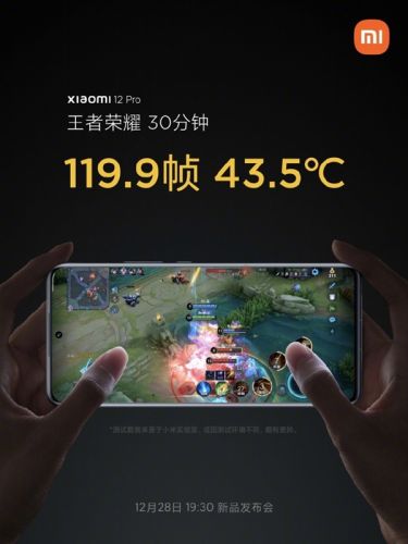 今天,小米手机官方公布了一则实测数据,《王者荣耀》小米12 Pro 近满帧玩半个小时,最高43.5度。