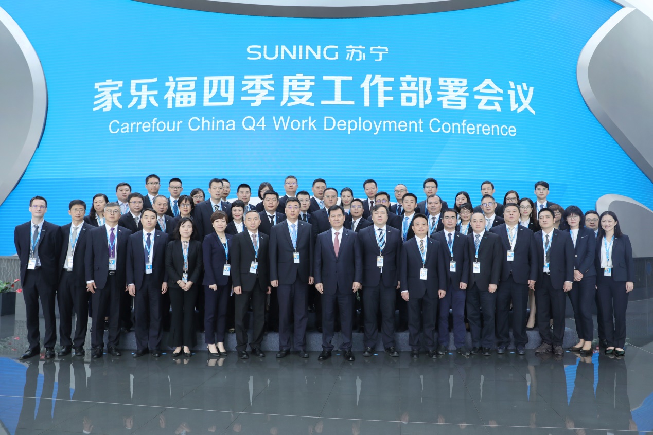 (图:在收购交割当日,苏宁控股集团董事长张近东与家乐福中国核心高管交流)