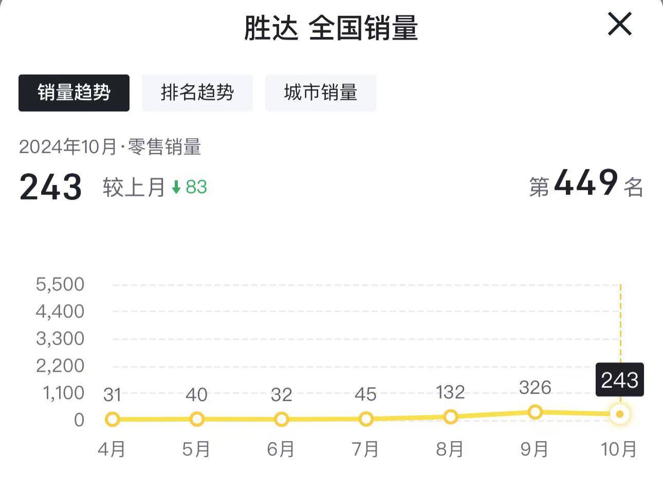 据相关数据显示,自今年8月份焕新上市以来,第五代胜达的销量并未出现显著提升。9月份销量仅为326辆,而到了10月份,销量更是下滑至243辆。在产能逐步提升的情况下,销量却未能得到有效改观,反而呈现下滑趋势,这无疑让北京现代对其市场前景感到更加迷茫。