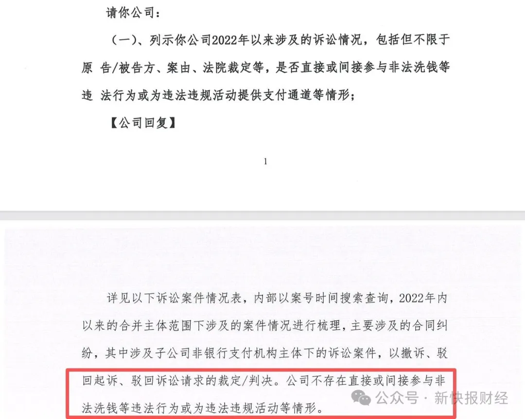 随后,汇元科技针对上述问询函进行回复。汇元科技在回复中指出,公司不存在直接或间接参与非法洗钱等违法行为或为违法违规活动等情形。引人注意的是,汇元科技在回复“是否涉及为违法违规活动提供支付通道”时少了“提供支付通道”字眼。