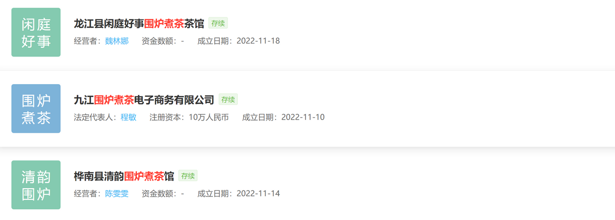 全国各地的网友都充满了对于“围炉烤茶”、“围炉煮茶”的热情,抖音上围炉煮茶话题的相关视频播放量已经超过12.6亿次播放。据天眼查专业版APP显示,也已成立了不少“围炉煮茶”相关的茶馆。