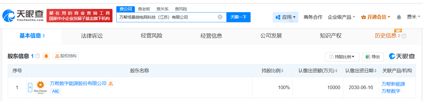 天眼查App显示,近日,万帮场景微电网科技(江苏)有限公司成立,法定代表人为贾刚,注册资本1亿人民币,经营范围包括智能输配电及控制设备销售、输配电及控制设备制造、工程和技术研究和试验发展、专业设计服务、工业设计服务、新兴能源技术研发等,由星星充电关联公司万帮数字能源股份有限公司全资持股。