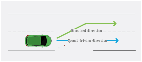 于是,研究人员发现了第二种更为隐蔽的方法,这次他们仅用了三个小贴纸。研究人员在地面上粘贴三张白色小贴纸后再次进行驾驶测试,发现该车辆的系统将贴纸识别为障碍物,并自动驶入一旁的对向车道。