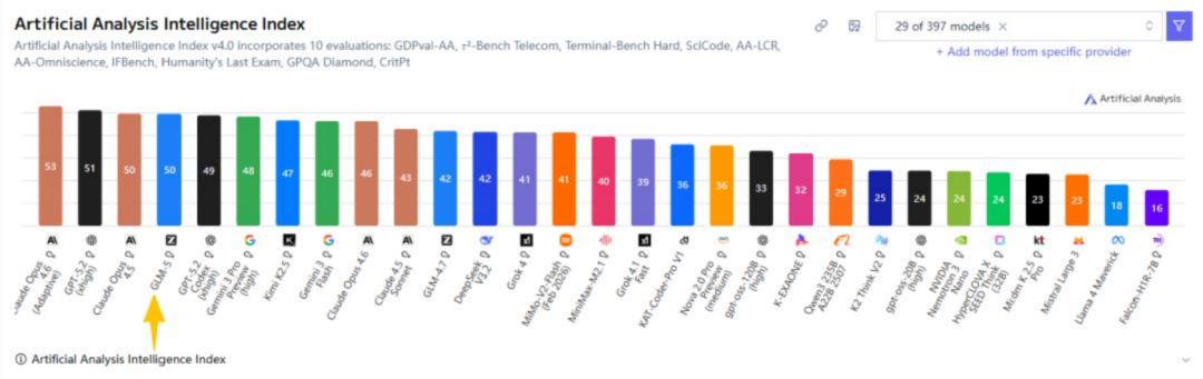 智谱新发布的GLM-5打破了这个惯例,从Artificial Analysis测试的结果来看,GLM-5直接跻身智能程度全球第4,编程能力全球第6,代理能力全球第3,紧追顶尖的闭源模型。而在AA-Omniscience幻觉率测试中,GLM-5把幻觉率压缩至34%。