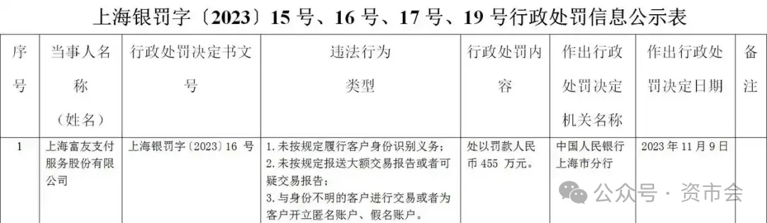 近年来,富友支付也多次因合规问题遭监管处罚。