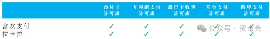 现在,富友支付拥有预付卡、互联网支付、银行卡收单、基金支付及跨境支付五类牌照,是行业少有的全牌照第三方支付机构之一,并拥有中国香港及美国的支付牌照。