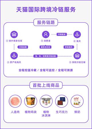 据了解,天猫国际跨境冷链商品从海外商家仓库出发,冷链运输至保税仓,消费者下单后几秒就可通关,最快当日即可抵达消费者手中。全过程控温冷藏,可监控、可追溯,为消费者提供可靠的新鲜商品保障。