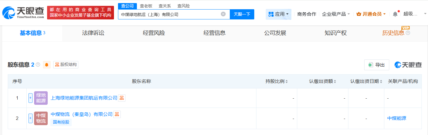 天眼查App显示,近日,中煤绿地航运(上海)有限公司成立,法定代表人为才汝骏,注册资本2.76亿人民币,经营范围包括水路普通货物运输、水路危险货物运输、国内船舶管理业务等,由中煤物流(秦皇岛)有限公司、上海绿地能源集团航运有限公司共同持股。