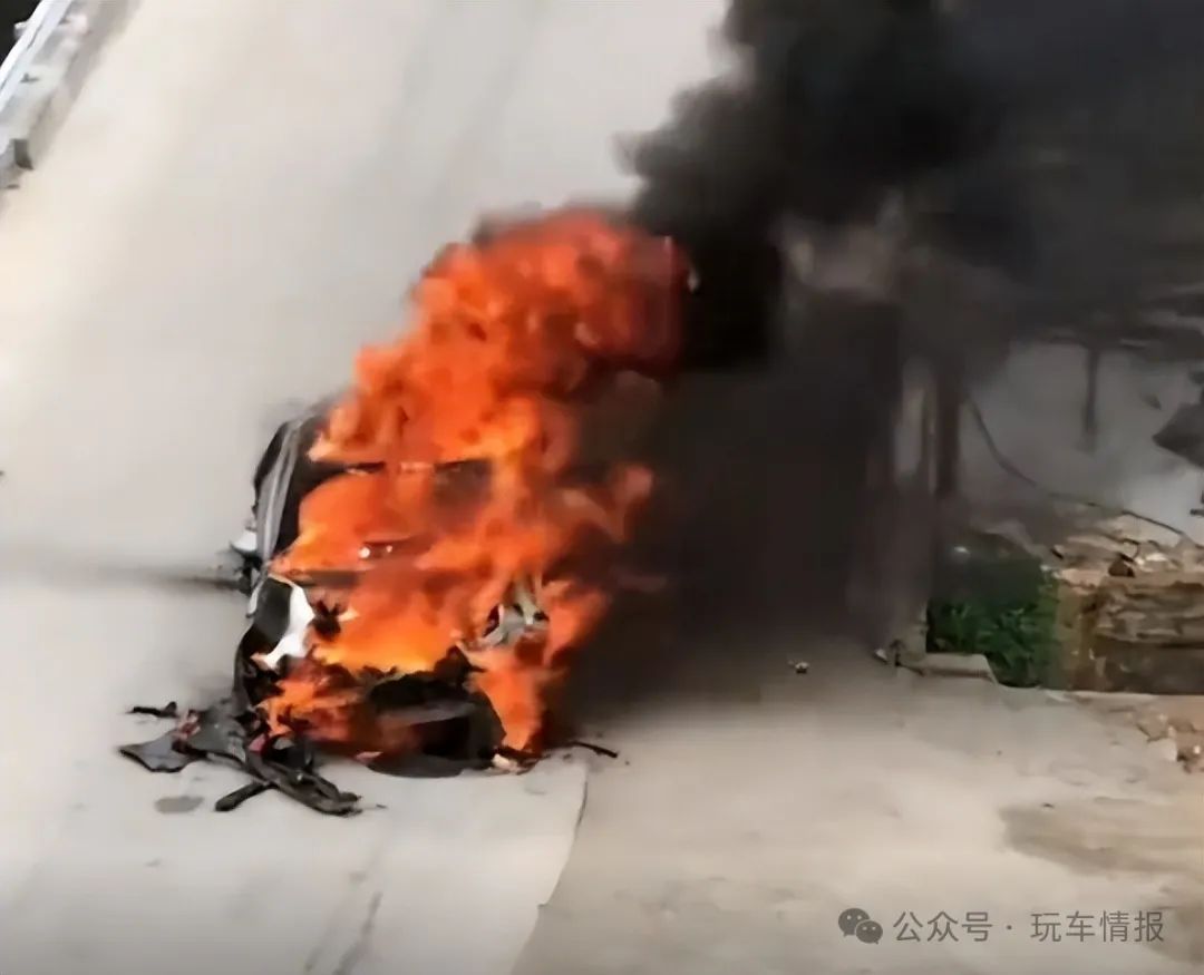 去年10月31日12时36分,浙江省嵊州市剡湖街道南桥,一辆小鹏新能源汽车在行驶过程中底盘不慎撞到一块石头,电池受到外力撞击,导致热失控起火。消防人员在接到报警后迅速赶到现场,于12时57分将大火扑灭,全车只剩下空壳。