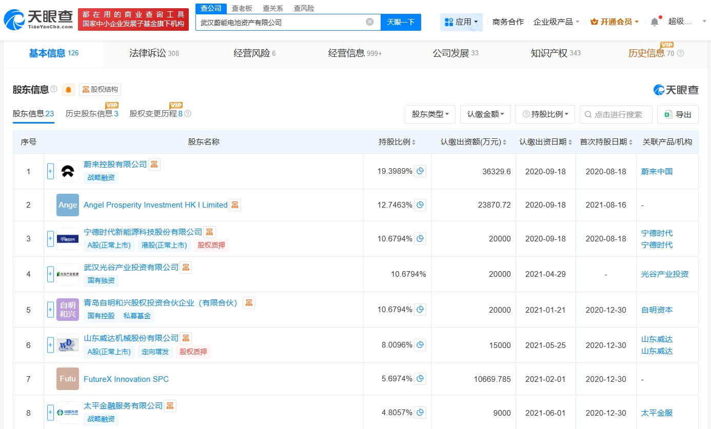天眼查App显示,近日,武汉蔚能电池资产有限公司发生工商变更,注册资本由约18.7亿人民币增至约21.4亿人民币,增幅约14%,同时部分高管发生变更。