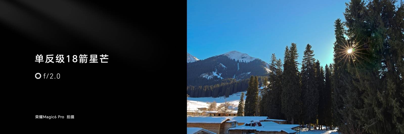 荣耀Magic6系列全面采用定制5000万像素的超动态鹰眼主摄,可以感知明暗,无惧逆光拍摄,带来媲美单反的抓拍体验,定义旗舰抓拍新标准;其中荣耀Magic6 Pro更是采用目前业界领先F1.4超大可变光圈,支持F1.4-F2.0智能可变光圈;同时配备1/1.49英寸业界领先大底长焦传感器、1.8亿像素的潜望长焦,轻松聚焦更多光线,达成更为清晰的影像拍摄。荣耀Magic6Pro超强的单反级荣耀鹰眼相机,实现了更进一步的全焦段鹰眼抓拍,给你单反级质感人像、单反级运动抓拍、单反级风光摄影以及单反级十八箭星芒,满足更多场景下轻松记录精彩瞬间的需求。