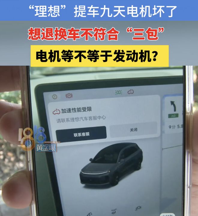 理想L6提车9天电机出现重大故障,官方:承诺免费更换但无法退换快讯