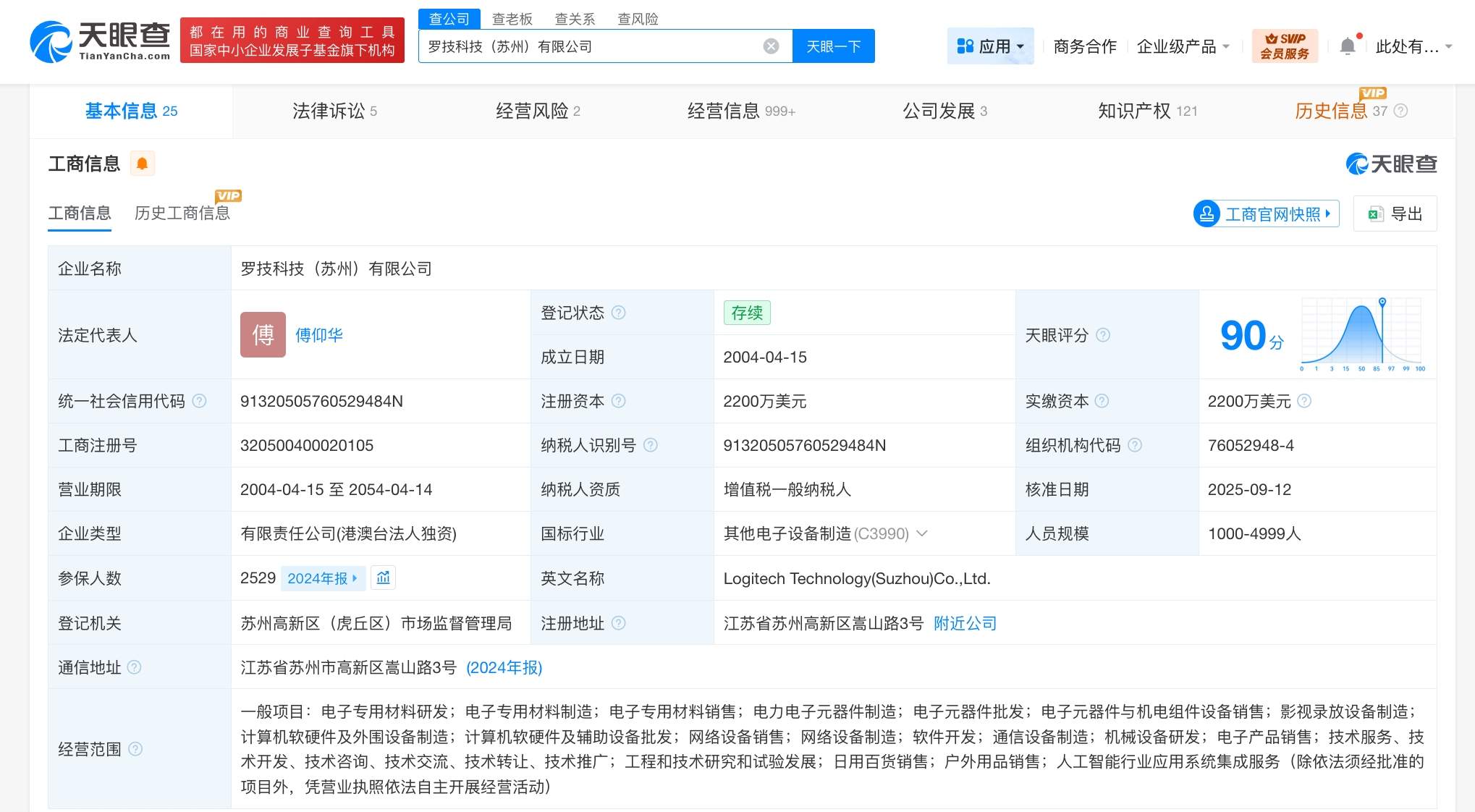 此外,罗技还关联罗技科技(苏州)有限公司成立于2004年4月,法定代表人为傅仰华,注册资本2200万美元,经营范围含电子专用材料研发、电子专用材料制造、电子专用材料销售、电力电子元器件制造等,由LOGITECH HONG KONG LIMITED全资持股。