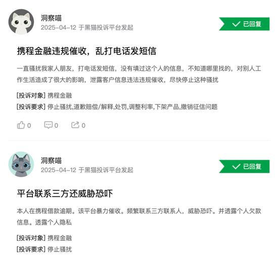 在黑猫投诉平台,携程金融的累计投诉高达1.4万条。许多用户反馈,携程金融存在频繁催收、暴力催收、威胁恐吓行为。
